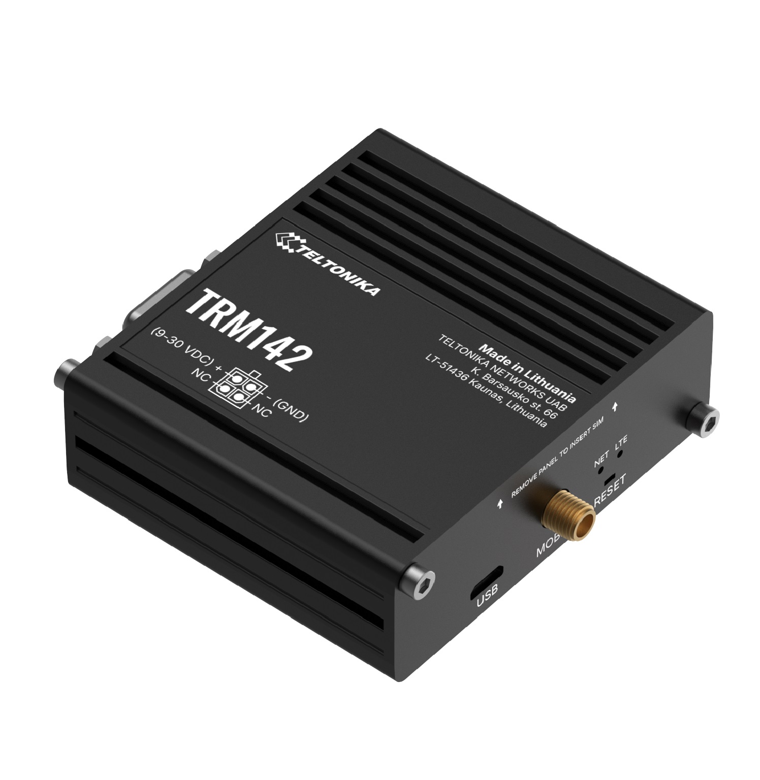 1 x DB9 connector, RS232 (with RTS, CTS flow control)